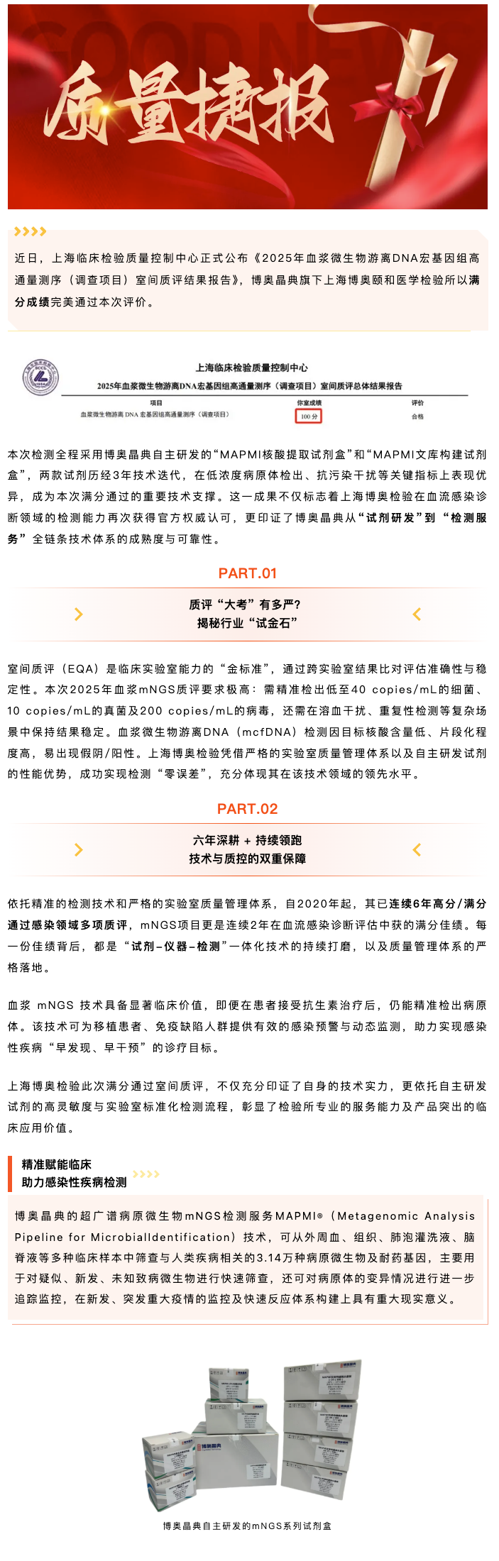 品质加冕!美高梅(MGM)1888旗下上海博奥检验满分顺利获得2025年血浆mNGS室间质评